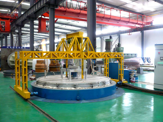 爐體:轉(zhuǎn)底爐外殼結(jié)構(gòu)由鋼板和型鋼焊接而成,爐體由鋼板密焊制成圓型,下部空間安裝有轉(zhuǎn)盤(pán)支撐,旋轉(zhuǎn)主軸,爐體下部底板上安裝有調(diào)速電機(jī)和變速器,通過(guò)傘型齒輪與主軸連接,轉(zhuǎn)盤(pán)可以在20—60分鐘旋轉(zhuǎn)任意調(diào)速。 爐襯:轉(zhuǎn)底爐采用扇形超輕質(zhì)節(jié)能耐火保溫磚和硅酸鋁纖維超節(jié)能爐襯,發(fā)熱元件按均溫布置在四周和底部專(zhuān)用槽內(nèi)。 爐門(mén):爐門(mén)采用不銹鋼板材質(zhì),高純纖維保溫,爐門(mén)開(kāi)啟操作便利,關(guān)閉時(shí)整個(gè)轉(zhuǎn)底爐為一個(gè)圓形整體,爐門(mén)密封性能...